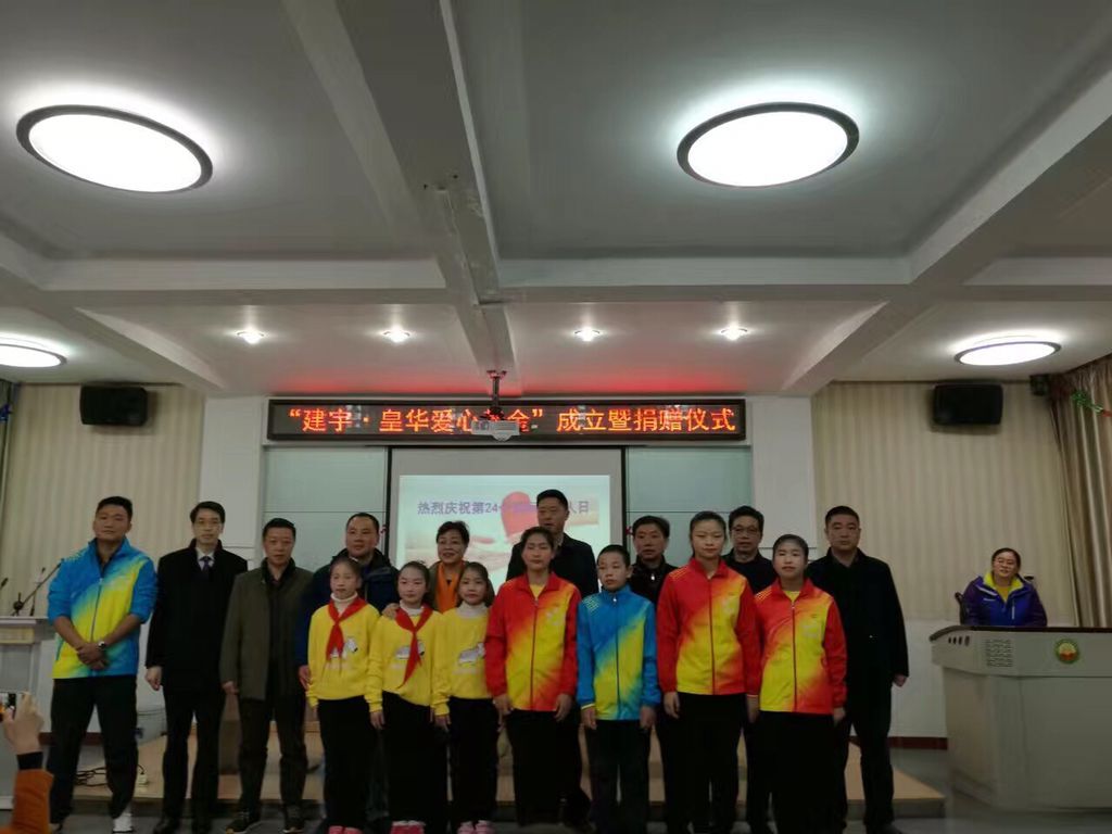 荷花塘特校劉春林校長致歡迎詞,對建宇?皇華愛心基金的捐贈表達了謝意和敬意,并表示按捐贈協議規范用好善款,發揮其最大功效。市教育局邵局長高度評價了建宇集團的此項善舉,對一直支持教育事業、熱衷公益的管民良董事長表示感謝,盛贊集團是高郵的重要企業,是一個社會責任感很強的企業,多年來得到了社會各界的好評。隨后董事長管民良代表集團捐贈,皇華國際大酒店王衛紅董事長代表集團簽約,殘聯吉平副理事長為建宇集團及管民良董事長頒發“愛心單位”牌匾和“愛心使者”證書,特校學生還表演了精心準備的文藝節目。