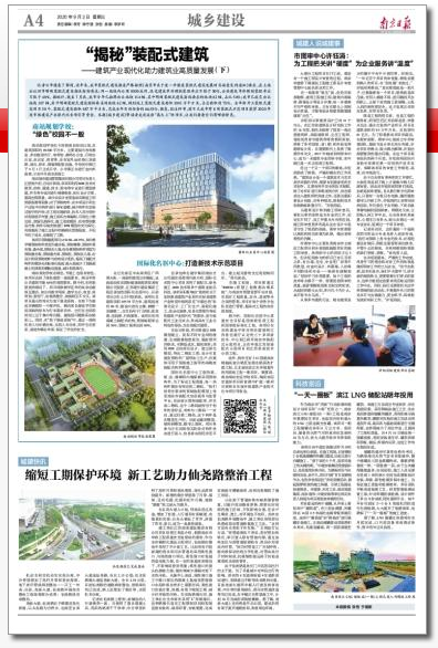 近日,由南京日報推出的城鄉建設版面中,集團南京分公司承建的國際化名醫中心項目作為南京市裝配式示范項目榮登上了該報A04版頭條。